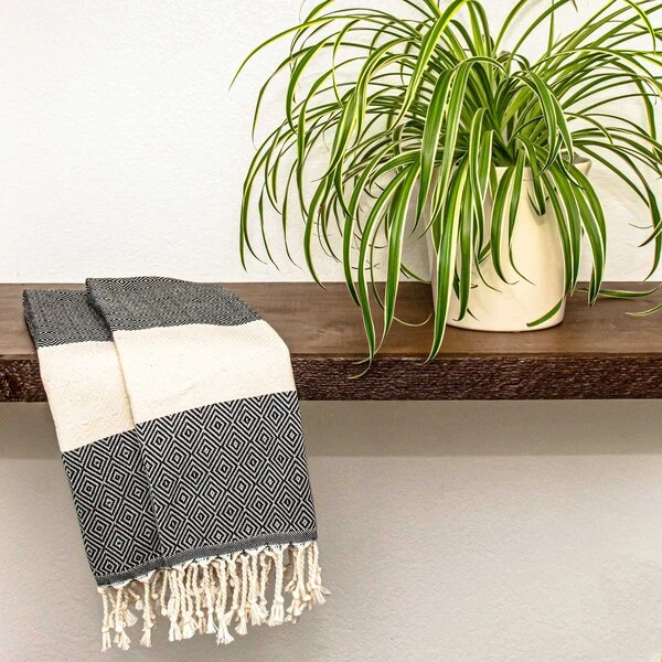 Turkish peshtemal towels are a welcome change of the ultra plush, slow-drying, shedding terry towels you’re used to. Woven from 100% cotton in traditional Turkish technique, the peshtemal, or pestemal, features an ultra thin and lightweight feel. You’ll be surprised at how soft and absorbent these towels are at first, and yet they get better with each wash. It also dries super fast, making it a popular choice for travelling and vacation. More than just a bath towel, the Deerlux Turkish Peshtemal Hand Towels are highly versatile. Its light and thin sizing makes it the perfect space saving choice for travel, and it can be used as a hand towel in vanity or bathroom, kitchen, spa, as a face towel, dish towel, and more. Its stylish and trendy nature and the Deerlux decorative packaging makes it a perfect gift for wedding, new homeowner, or anyone who appreciates a luxury find.