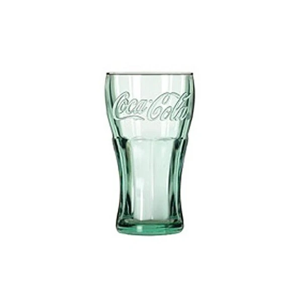 16 OZ, Coca Cola Glass, Genuine Contour Style With The Script Coca Cola Logo Green Recycled Glass Look