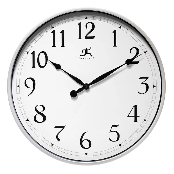 Give your home a classic touch with this 18″ Silver Decorative Wall Clock! This office clock/business clock has a large open face and is perfect in all rooms in any business setting. People with simple tastes will gravitate toward this clock because of its minimalistic design principles. With black metal hands and simple yet modern black numbering against a clean white clock face, it is the perfect way to display time in a modern/contemporary type of décor. Its large size makes it easy to read and perfect for working on projects or cooking! Place this wall clock in your living room, office or kitchen for a classic look. You will love the minimalistic design with basic black and white coloring. In addition, this clock also features shatter resistant lens, a no fuss option for a classic time piece. It has a quartz mechanism for accurate time keeping and uses a single AA battery.