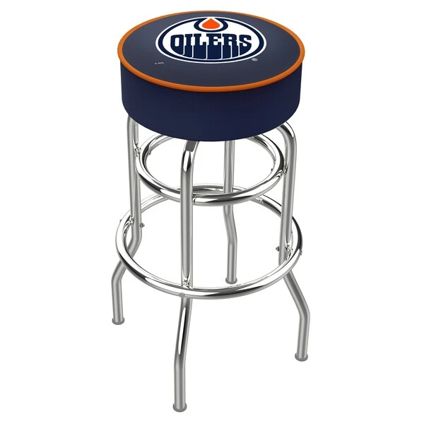 25″ Edmonton Oilers Cushion Seat, 2-Ring Chrome Swivel Bar Stool