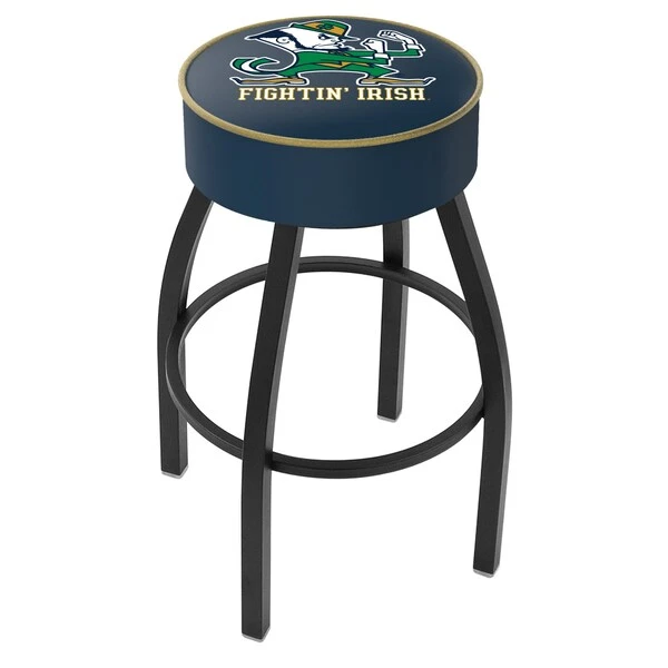 Made for the ultimate sports fan, you will be proud to show where your loyalty lies with this impressive Officially Licensed stool from the Holland Bar Stool Co. This contemporary L8B1 stool features a single-ring black wrinkle base with a 5″ scooped cushion that conceals the swivel for an exceptionally clean look. A state of the art print process is used in applying specially formulated UV vinyl ink in numerous stages to produce a sharp, crisp, clear image to ensure a perfect reproduction of the logo. You won’t find a higher quality logo stool on the market. The frame is made from commercial quality 16 gauge, 1 1/4 inch tube steel with solid mig welded joints to guarantee strength and durability. The powder coated finish resists chips and scratches and ensures a long-lasting, rich appearance. The cushion seats are of the highest quality as well, utilizing a breathable, commercial grade vinyl. At the heart of the cushion is highly-dense foam that provides maximum support and will not breakdown in a couple years. If you’re going to finish your bar, game room, or man cave do it right- with a logo stool made by the Holland Bar Stool Co.