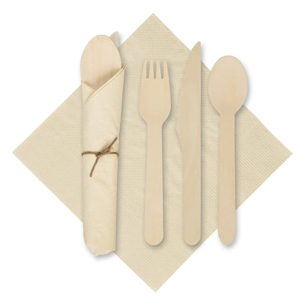 Add a convenient, eco-friendly touch to your meal service with our 6 in x 6 in CaterWrap Pre-Rolled Kraft Napkins with Wood Cutlery 500 ct. Each rolled cutlery contains one 6″ x 6″ quality tissue napkin, one wooden fork, one wooden knife, and one wooden spoon. They come pre-rolled and secured with a raffia tie. The wooden cutlery is made from highly renewable resources, making this CaterWrap an eco-friendly choice for your business. These pre-rolled CaterWrap feature a look that’s equal parts elegant and natural. Sold 500 per package, select these for your event or business today!