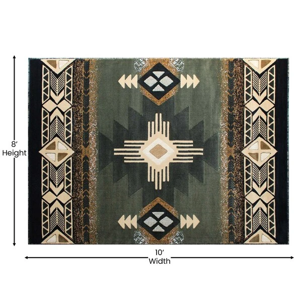 Let the richly hued tones of this 8′ x 10′ area rug anchor the look of your space. The rustic style of this rug contrasts beautifully with everything from new furnishings to antique pieces. This area rug boasts a striking geometric pattern that can either accent or be the centerpiece of your room. Great looks are just the tip of the iceberg. Made from stain-resistant olefin fibers with a jute backing, this rug has an impressively soft underfoot tactile sensation. This multipurpose area rug is colorfast, water repellent, lays flat and does not shed so it works great in high traffic areas. Rolled and covered in plastic sheeting, this olefin rug will transport easily to your intended room. Vacuum regularly with no beater bar and spot clean if needed using a diluted solutio+B29:B31n of clear, mild detergent and water.
