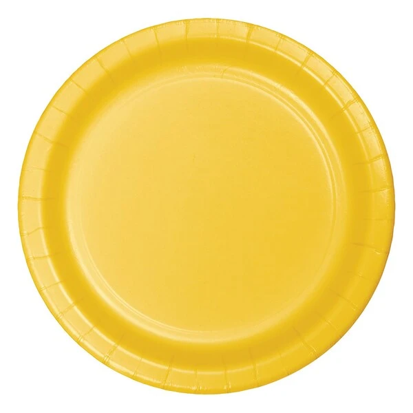 Easily add a hint of style to your table display with the School Bus Yellow 9” Plates. The durable disposable plates are constructed of heavyweight paperboard stock and are sturdy enough to handle pot luck service or even a more formal sit down meal. Sold in quantities of 240, these dinner plates can be combined with other eye-catching tableware selections from the complete line of School Bus Yellow party supplies.