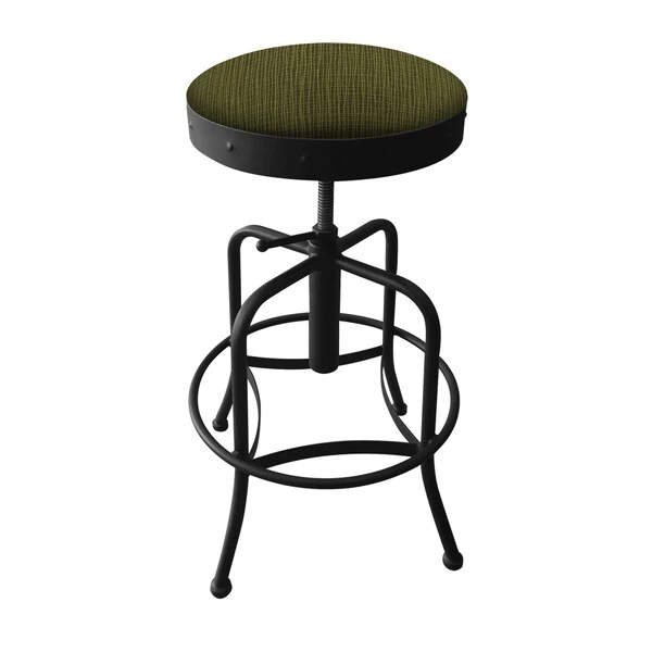 Holland Bar Stool’s Adjustable, Industrial style swivel stool brings back the classic look of the early 1900’s drafting stools. Built to last a lifetime, the steel tube frame has solid welds on the outside of the legs, connecting the substantial, 18″ diameter foot ring, and on the inside, attaching a solid, steel inner support. The 15″ diameter seat is accented by 2″, studded ring. The 1″ thick, solid steel screw, allows the seat height to be adjusted from 24″ (Counter Height) to 30″ (Bar Height). The locking nut can set the stool to your desired height. The cushion seats are of the highest quality as well, utilizing a breathable, commercial grade vinyl or fabric. At the heart of the cushion is 2 1/2 inches of highly-dense foam that provides maximum support and will not breakdown in a couple years. Don’t be fooled by a cheap immitation. Buy the best, with a Holland Bar Stool. – – With over 18 years of experience in the furniture industry, Holland Bar Stool Co. was founded on the principles of fine quality, craftsmanship, and service. As an industry leading manufacturer of upscale, commercial quality barstools, tables, and chairs, we use the finest high-quality plating grade steel and hardwood to produce our products. We distance ourselves from competitors by building our products with care and thought. We pride ourselves on having tough, durable products that are known for their quality. If you’re finishing your bar or game room with a new stool, chair, or table, than do it right – with a Holland Bar Stool.