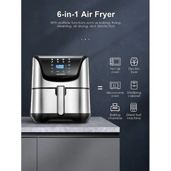 AIR FRYER 5.8QT, Air Fryer Oven, Digital Control, Dishwasher-Safe, Smart Touch Panel, Recipe Included, Silver, 2021