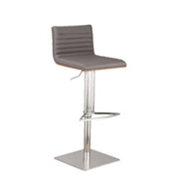 Armen Art Furniture Cafe Adjustable Brushed Stainless Steel Barstool, Gray Pu With Walnut Back