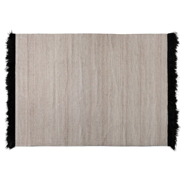 Refresh your home with the elegant minimalism of the Dalston rug. Handwoven in India, this rug is comprised of wool, viscose, and brisa hide. Shades of beige are framed by deep black for a stunning display that adds a modern touch to any room. The fluffy sides of the Dalston contrast with the smoother center to add texture and depth for an attention-grabbing display. An effortless way to add contemporary style to any space, the Dalston rug is an outstanding addition to the home.