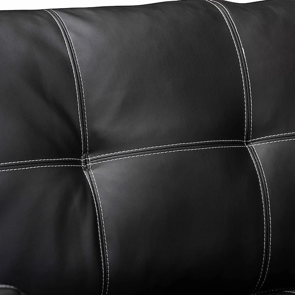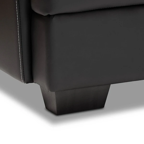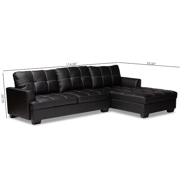 Add comfort and style to your living room with the Dobson sofa. This 2-piece sectional can seat up to five. Black bonded leather upholstery adds a sleek look and is enhanced by intricate white stitching that accentuates the grid tufting. Firm foam cushioning provides ample comfort, while black, non-marking feet provide floor protection. Requiring minor assembly, the Dobson sofa strikes the optimal balance between aesthetics and utility.