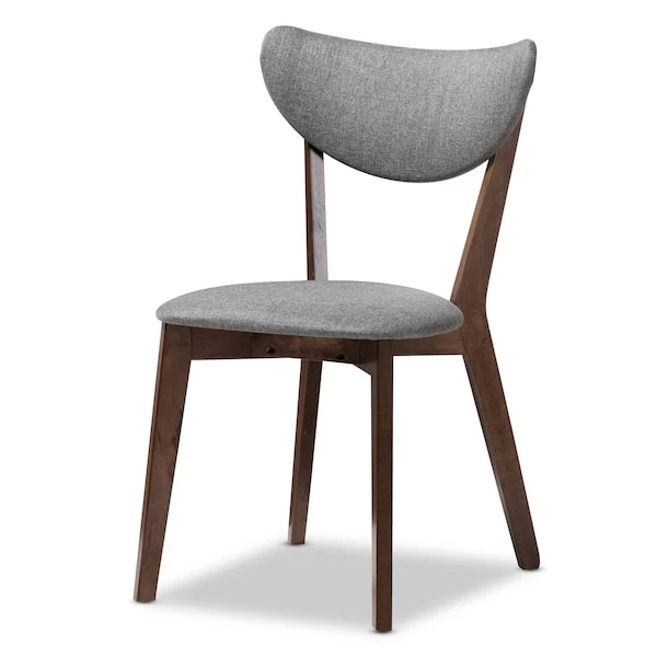 Make your dining room the place to be with the Hadrea dining set. The mid-century modern-inspired design is both statement-making and practical. The Hadrea set is built to last with a sturdy engineered wood construction and walnut finish. The angled legs of the chairs and table evoke a sense of charm and open spaces. The chairs of the Hadrea are upholstered in dark grey fabric with foam padded seats and feature an open, curved chair back design. The chic, sophisticated look of the dining set is versatile and fun to coordinate with your current decor. The Hadrea includes four dining chairs and one dining table, which come together in one box. This set requires assembly.