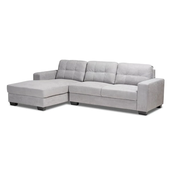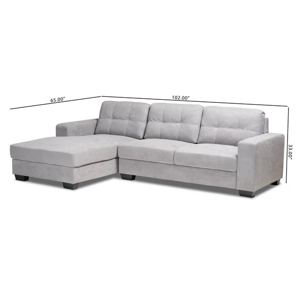 Baxton Studio Langley Light Grey Upholstered Sectional Sofa With Left Facing Chaise