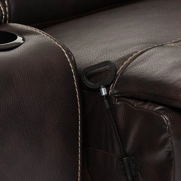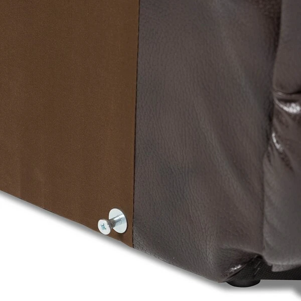 Relax in total comfort with the Mistral 6-Piece Sectional with Recliners Corner Lounge Suite. Constructed of plywood frame, this 6-piece sectional with recliners will provide you and your family a good gathering spot and a total relaxation. Upholstered in dark brown bonded leather, the seat of the set is foam filled and cushioned with pocket spring for ultimate comfort while the back is filled with fiber for extra softness. To ease every day’s use, left arm facing chair is completed with trigger-pull on the side to recline while armless recliner relies on the cable pull hidden on the side to recline. The wedge at the corner, armless chair and the console do not recline. Metal brackets allow each piece to be connected. Other than the left arm facing recliner and right arm facing chaise, the rest of the pieces are modular and you could decide on the way to connect them. For ultimate comfort, the back of the chaise could be pushed back for about 45 degree to relax. There’s room for everyone to snuggle in for some fun time together with this living room set. White contrast stitching’s add more contemporary to the set.