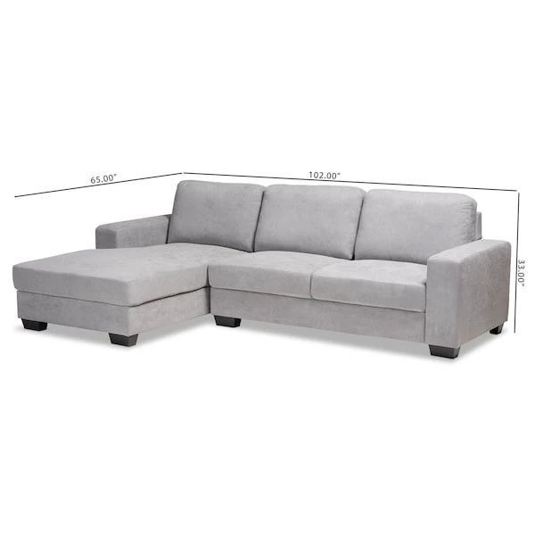 Baxton Studio Nevin Light Grey Upholstered Sectional Sofa With Left Facing Chaise