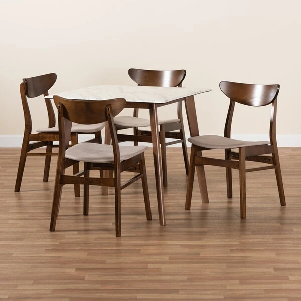 Baxton Studio Paras Mid-Century Transitional Light Beige Fabric And Walnut Brown Finished Wood 5-PC Dining Set
