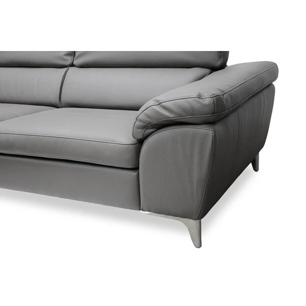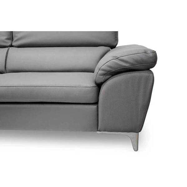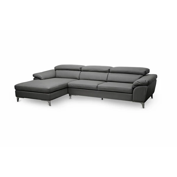 Humdrum it’s not, this hip, urban sofa has an indisputable torrent of style. The Voight Sectional effortlessly transforms a room: from its dark gray faux leather to the adjustable headrests, style and function are united in this design. The Voight Sectional features a sturdy wooden frame, foam cushioning, and sleek chrome-plated steel legs with non-marking feet. The sofa and chaise portions of this L-shaped sectional connect to one another with a metal bracket positioned between them. Keep your sectional sofa looking like new by wiping it clean with a damp cloth. Simple, minor assembly is required. Overall dimension: 114.75″W x 67.75″D x 27.75-36″H, seat dimension: 90.5″W x 50.5″D x16.875″H, sofa section: 71.5″W x 39.5″D x 27.75-36″H, sofa seat dimension: 60.5″W x 21.5″D x 16.875″H, chaise section: 41.5″W x 67.75″D x 27.75-36″H,chaise seat dimension: 29.5″W x 50.25″D x 16.875″H