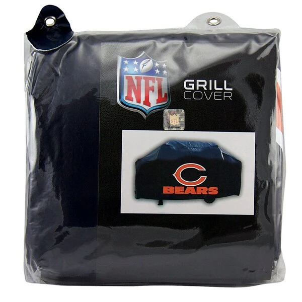 Show off your Chicago Bears pride with this deluxe vinyl grill cover! This grill cover fits most gas grills. It has a padded interior to protect your grill and hook and loop closure straps to hold it in place.