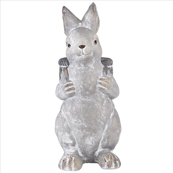 Celebrate the bounty of springtime with this almost foot-and-a-half tall bunny rabbit who happily hops into your home or garden decor with a characteristic basket full of bounty! Cast in quality designer resin with a rough, faux stone finish to replicate its soft fur, this handsome hare is a Design Toscano exclusive to be beautifully displayed year-round. Optionally, dried or silk flowers can be added to his basket. 10″Wx61⁄2″Dx16″H. 6 lbs. Basket: 41⁄4″Wx41⁄4″D.