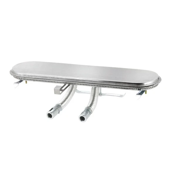 15.5 stainless steel bar burner with two flexible venturis with an improved design; ports up or down with fully sealed left and right sections. Universal mounting hardware with adjustable feet. Item replaces most small to medium size bar burners.