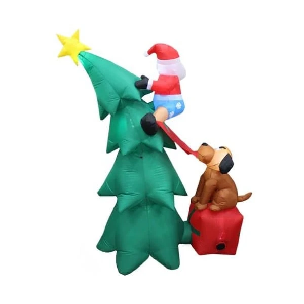 The Christmas Dog Bite Santa Inflatable will add a little Christmas magic to your yard with this fun inflatable This 4ft tall inflatable features light bulbs for nighttime display. Inflates in minutes with included fan and UL transformer and deflates fast for convenient storage