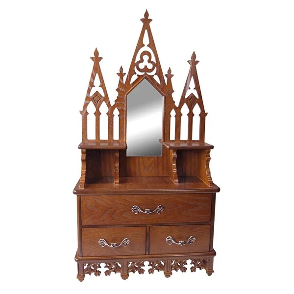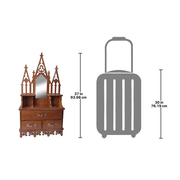 GOTHIC DECOR – This home furnishing wall decor showpiece shows off stunning skills of carpentry and Gothic design as unique decorative wall artWALL MOUNT CURIO CABINET – Our wood wall curio cabinet with hanging hardware features three shelves, double cubby holes and three metal pull drawers perfect for storageHIGH-QUALITY – Hand-crafted using a sparkling mirror, engineered, laser cut wood and sculptural resin fretwork adds Gothic charm to your home furnishings.DESIGN TOSCANO CURIO CABINETS – Exclusive to the Design Toscano brand, this curio cabinet provides a Gothic decor focal point for your living roomOur wood curio cabinet shelf measures 19″Wx7″Dx37″H. 19 lbs. making it the perfect display cabinet!