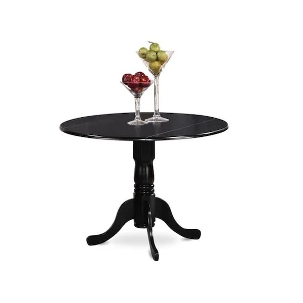 East West Furniture DLT-BLK-TP Dublin Dinette Round Table With Two 9 In Drop-Leaves