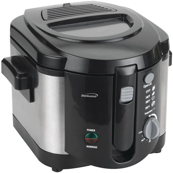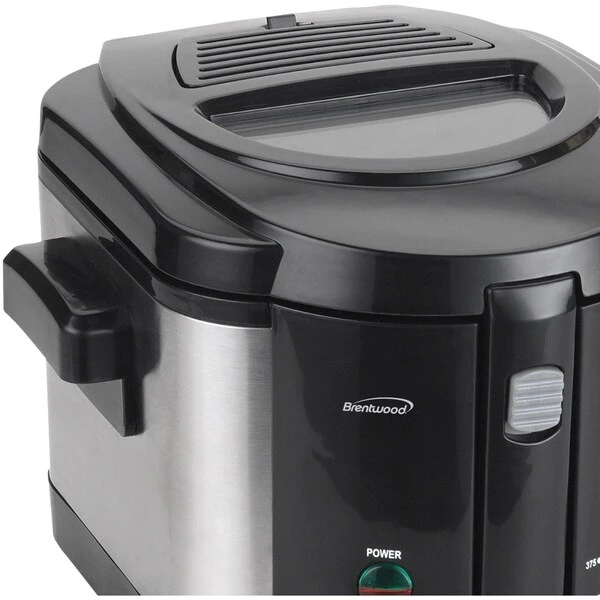 The powerful Brentwood Appliances’ DF-720 1,200 watt 8-Cup Electric Deep Fryer fries all your favorite foods while taking up little counter and storage space. Indulge in crispy chicken tenders, crunchy onion rings, fluffy French fries, zucchini, fish and more! This deep fryer features a safety lock lid, large viewing window, adjustable temperature and convenient power indicator lights. The removable lid is easy to clean while the inner pot is nonstick.