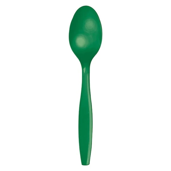 An elegant complement to a variety of themed party ensembles, our Emerald Green Plastic Spoons are durable enough to handle the needs of your event. Constructed of premium strength plastic, the spoons offer eye-catching appeal with the ease of disposability. Sold 288 per package, the spoons’ bold and neutral tone makes them ideal for use at any number of year round occasions.