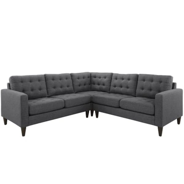 Empress 3 Piece Fabric Sectional Sofa Set- Gray, 3Pk