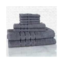 Lavish Home 67-0013-C 12 X 11.75 In. 100 Percent Cotton Plush Bath Towel Set; Chocolate – 8 Piece
