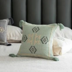 16″ Handwoven Cotton Throw Pillow Cover With Tribal Aztec Design And Tassel Corners With Filler