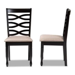 Baxton Studio Lanier Sand Upholstered Brown Finished 2-Piece Wood Dining Chair Set