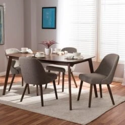 Baxton Studio Cody Light Grey Upholstered Walnut Finished Wood 5-Piece Dining Set