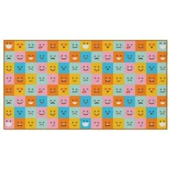 6 Ft. Social Distancing Colorful Kids Classroom Seating Area Rug, Emoji Mask Design, 8 X 15 Ft XL