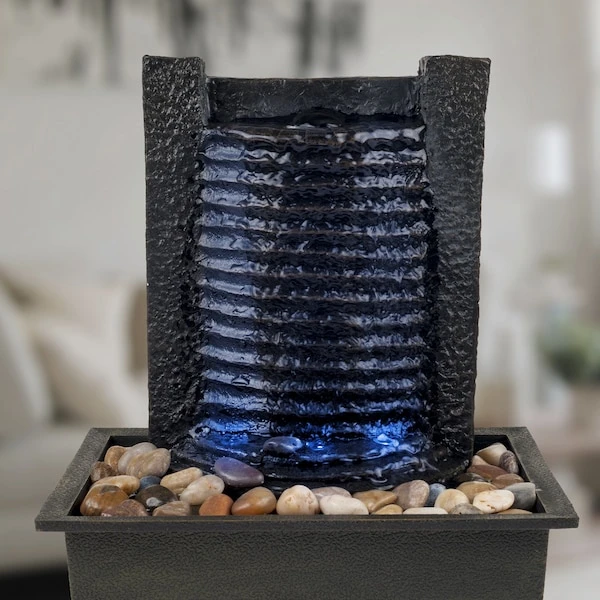 The soothing water sounds, contemporary look, and lighting ambiance of the Stone Wall Mini Fountain by Pure Garden will bring tranquility, relaxation, and modern beauty to your living or working area. The indoor waterfall features a polyresin construction for durability, LED lights, and a pump with a maximum flow of 47 gallons per hour. Whether you use this desk fountain as decoration in your office or on a tabletop in your home, this lighted waterfall fountain is sure to bring an environment of peace and serenity, while leaving an elegant lasting impression.IMPORTANT: Pure Garden is committed to providing the consumer with the absolute best price and value on all of our products. NOTE: This is an exclusive product of Pure Garden and ONLY Indoor Water Fountains by Pure Garden are GUARANTEED to be genuine. Avoid buying counterfeit products and transacting with unauthorized sellers.