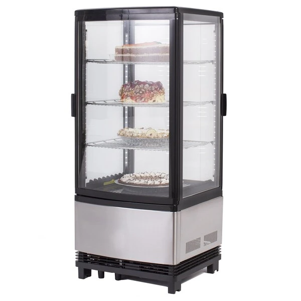 Pass Through, 4 Sided, Clear Door, Dual Pane Countertop Merchandiser Refrigerators, Bottom Mount Compressor, LED Lighting, Manual Defrost, Black Painted Steel Exterior, ABS Interior.