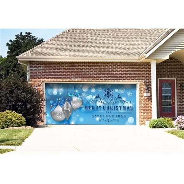 Silver Ornaments on a Wintry Blue Background Christmas Garage Door Decoration Silver ornaments on a chilly winter blue background. Garage Door Decor. Fits Standard 7’x16′ Garage Door. Flat or Paneled Garage Doors. Garage Door Decor is a Holiday Decoration that you hang on your garage door in a matter of just a few minutes. The Garage Door Decor makes it appear to people passing by that the garage door is open and you have a fun Holiday scene in your garage. My Door Decor created and manufactures the Garage Door Decor and there is nothing else that compares to the Garage Door Decor in Quality, Designs and Pricing. Garage Door Decor is designed to work on standard roll up doors and flat doors. All Garage Door Decors are made of the highest quality materials and construction for many, many years of enjoyment. The Garage Door Decor comes to you in a reusable storage box and ready to hang on your door. The hardware we have developed allows you to hang the Garage Door Decor in a matter of just a few minutes and you are able to use your garage door as you normally would. There is nothing attached directly to the door . It is truly an incredible and fun Holiday Decoration. .