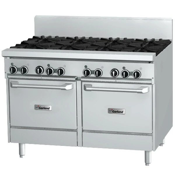 Equipped w four 26000 BTU Starfire-Pro burners the Garland GF48-4G24LL natural gas 48in range w 24in griddle and 2 space saver ovens provides you w optimum cooking performance while its flame failure protection system assures safety and peace of mind. This system shuts off gas flow to each burner automatically if its pilot light is extinguished reducing the risk of fires. Plus w its 27 1/4in deep cooking area and 5in deep front ledge this range also has the largest usable cooking surface in the industry!Ergonomic split cast iron grates let you easily slide heavy pots from one section to another. Its 5/8in thick steel griddle allows you to evenly cook meats vegetables and more delivering 18000 BTUs for each 12in section 36000 BTU total. This range’s 2 space saver ovens each have 32000 BTUs of cooking power and a fully porcelainized interior to deliver best-in-class cooking evenness and quick recovery time. They are controlled by a snap action modulating thermostat w a Low-500 degree Fahrenheit range.For a quick cleanup this unit boasts a sleek and sturdy stainless steel front and sides and its stainless steel low profile backguard protects your walls from splashes.Overall Dimensions:Left to Right: 47 1/4inFront to Back: 34 1/2inCooking Surface Height: 36inHeight including back guard: 45 3/8inOven Dimensions:Left to Right: 20inFront to Back: 26inHeight: 13in