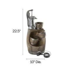 4-tier Old Fashion Hand Pump Fountain Polyresin Barrel Cascading Waterfall With LED Lights, Outdoor