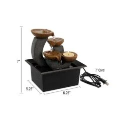 3-tier Tabletop Water Fountain With Candle Holder, Electric Pump For Office, And Home Décor, 7-inch