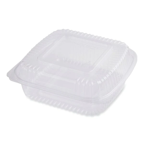 Made from PLA polylactic plastic, a polymer made from plants. Great choice for takeout and grab and go. Ideal for cold foods like salads and grain bowls. Freezer safe. Not microwavable. PLA products should be stored in a cool place below 110 Degrees F and out of direct sunlight.