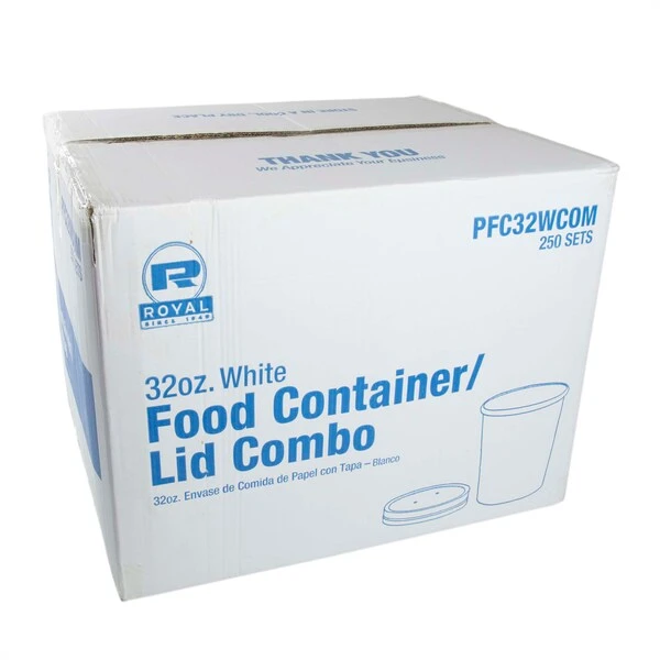 Royal 32 Oz. White Paper Food Container And Lid Combo, PK250