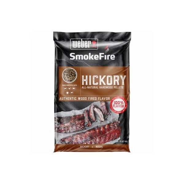 Smokefire AllNatural Hardwood Pellets, 20 LB Bag, Hickory, Authentic Hardwood Pellets, Crafted For The Best Tasting BBQ, Moderate Flavor, Bold, Smoky, BaconLike, Blend Consist Of 40 Percent Hickory 60 Percent Oak Flavors To Create An Authentic Wood Fired Taste, 100 Percent Flavor, 0 Percent Fillers Added