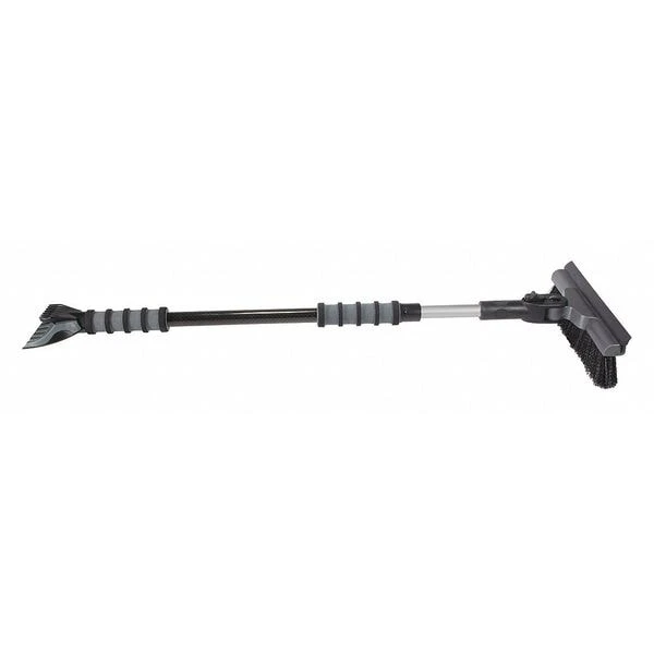 Snow Broom and Scraper, Handle Type Telescopic, Brush Head Width 10 3/4 in, Scraper Blade Width 4 in, Scraper Blade Height 3 1/2 in, Handle Length 48 in, Fixed, Handle Material Aluminum, Handle Color Black, Gray, Bristle Color Black, Gray, Grip Material Foam, Scraper Blade Material Polycarbonate