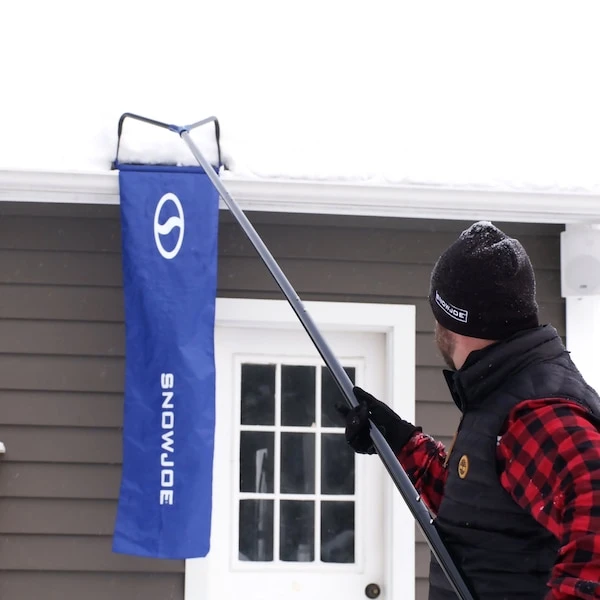 SNOW JOE TO THE RESCUE. Prevent damage due to the heavy snow loads piled onto your roof and save on costly repairs with the Snow Shovel Roof Rake from SNOW JOE. Handy, easy-to-use and affordable, this durable roof rake quickly removes snow and other debris from your roof while you stand safely on solid ground. The heavy-duty polyester slide smoothly and quickly removes snow from hard-to-reach heights. Simply roll the roof rake frame on the easy-glide rollers wheels and snow slides down the 15″ x 20′ polyester slide. The four included extension poles provide five different length options – 22′ , 18′ , 14.2′ , 10.3′ , 6.4′ – to suit the tallest or shortest roof. And weighing just 6.2 lbs, this ultra-lightweight, durable winter essential is easy to maneuver. So, when your roof is feeling the weight of winter: Go With Joe. RJ208M Snow Shovel Roof Rake from SNOW JOE. GET EQUIPPED.