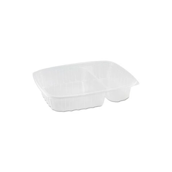 Clear hinged containers offer crystal clarity for excellent product visibility. Dual bar locks ensure a secure closure, even after multiple openings, while sidewall ribbing and chamfered corners increase strength and durability. Lightweight, crush-resistant and stackable. Serve multiple applications. Food Container Type: Hinged Lid Container; Materials: PET – Polyethylene Terephthalate; Food Container Material Type: Plastic; Colors: Clear.