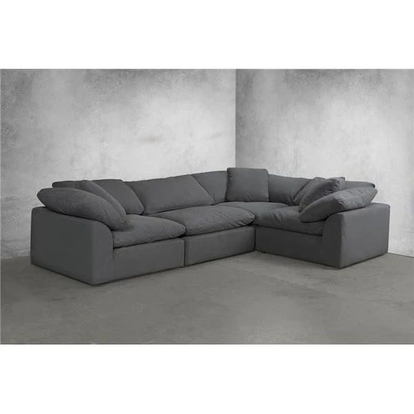 Sunset trading cloud puff collection is truly as comfortable as it looks. Close your eyes, imagine you are floating on a cloud, enjoy this feeling of total relaxation in your home, loft or apartment with this cool sectional collection. The contemporary low frame makes this sleek sectional sofa ideal to bring your open living spaces together. So versatile, instead of a futon in your dorm, spare bedroom or home office, feather pillow top seating supported by inner springs make this as cozy as a bed. Build your own, modular left or right facing corner, armless and ottoman allow you to create the ultimate laidback lounge that conforms to your room. Perfect for kids, pets and parties, unexpected spills will roll off the washable soft fabric slipcovers. This collection is simply the best family room furniture ever.