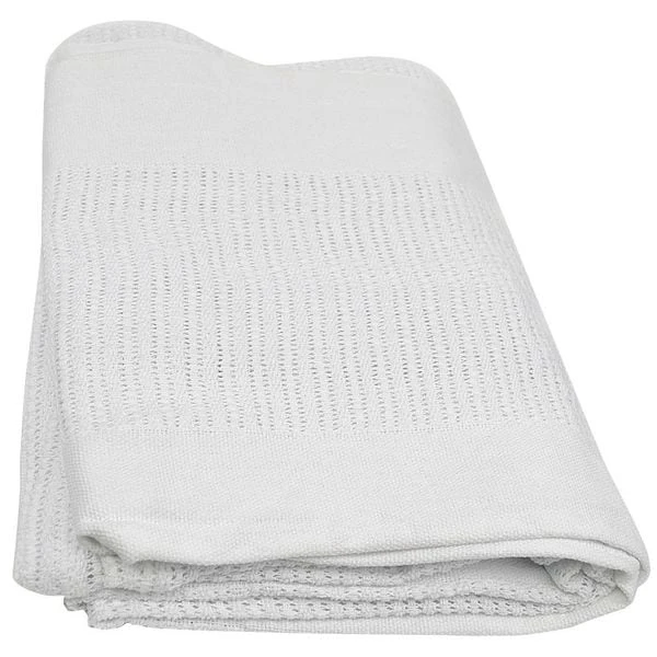 Thermal Blanket, Leno Weave, Twin Size, Width 66 In., Length 90 In., 100 Percent Cotton, Color White, All 4 Sides, Blanket Weight 2.5 lbs., Gentle Machine or Hand Wash. Luke Warm Water. No Harsh Detergents. Do not Bleach. Tumble Dry Low.