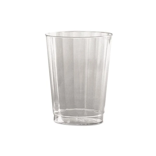 These clear plastic tumblers feature an elegant fluted design. Rigid plastic offers the strength and beauty of glassware. Provide a tasteful upscale appearance to any surroundings. They are disposable and offer all of the appeal of glass without the clean-up. Tall Tumbler. Cup Type: Hot/Cold; Capacity Volume: 10 oz; Materials: Plastic; Colors: Clear.