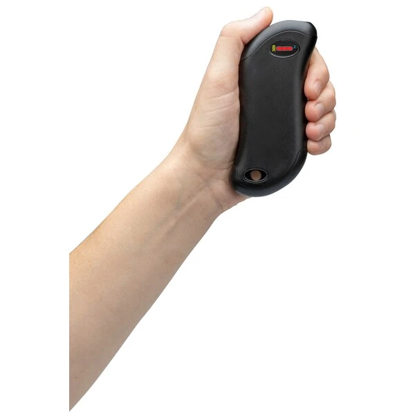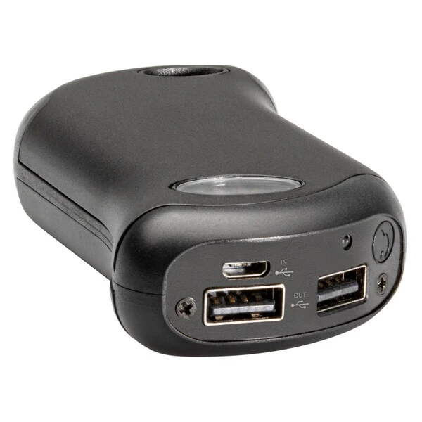 The HeatBank® 9s Plus Rechargeable Hand Warmer with curved, ergonomic design and digital display keeps you warm with the press of a button for up to 9 hours. Dual sided heat up to 120° F with six heat settings for adjustable and comfortable warmth. Also features dual charging ports so you can charge 2 compatible USB devices (cables not included), intuitive controls and integrated LED flashlight. Includes: rechargeable 5,200 mAh lithium-ion battery, adjustable neck lanyard and USB charging cable. Colored battery and heat digital display quickly shows the selected heat settings and battery charge remaining. This product does not use any fuel or burners.