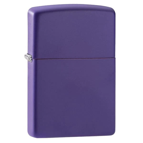 The Purple Matte lighter is back and ready for action. This stunning base model displays a deep purple hue and has a lasered hinge and bottom stamp. Comes packaged in a gift box. For optimal performance fill with Zippo lighter fuel.